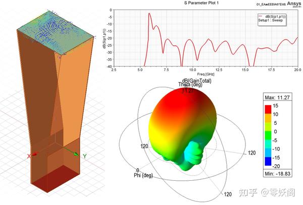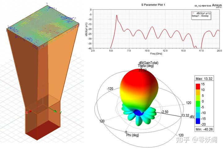 下圖給出了角錐雙脊喇叭天線的仿真結果。