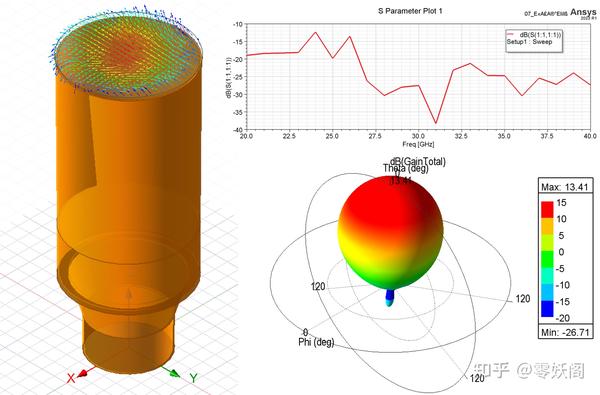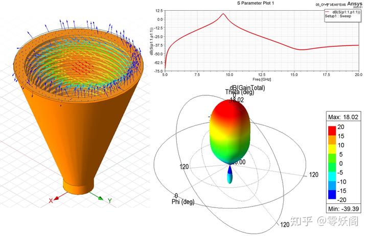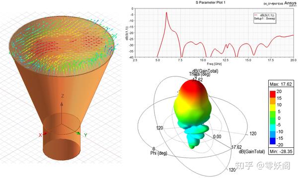 下圖給出了圓錐喇叭天線的仿真結果。