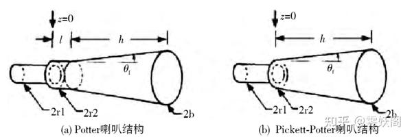 雙模圓錐喇叭的結構實現形式不是唯一的,常見的實現方式有 Potter 喇叭和 Pickett-Potter 喇叭。